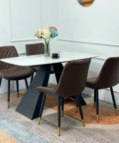 Ceramic Stone With Stainless Steel Legs Dining Table Set For 4 D0102-0003