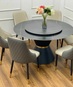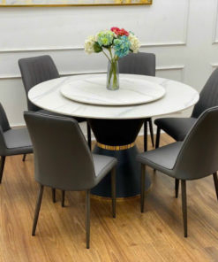 Round Ceramic Stone With Stainless Steel Legs Dining Table Set For 6 D0101-0007