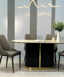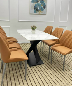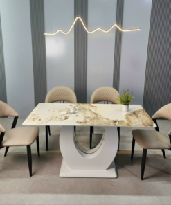 Ceramic Stone With Stainless Steel Legs Dining Table Set For 6 D0101-0009