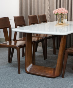 Stone Top With Walnut Legs Dining Table Set For 6 D0101-0018