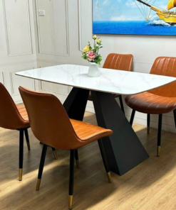 Ceramic Stone With Stainless Steel Legs Dining Table Set For 6 D0101-0010
