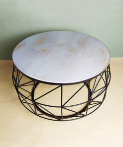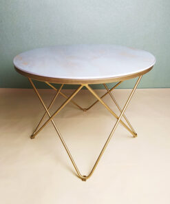 Round White Glass Table With Veins Coffee Table A0401-0030