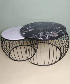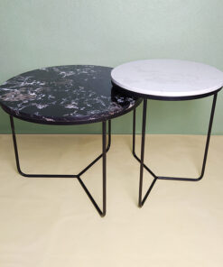 Black & White Stone With Veins Nesting Table A0403-0014